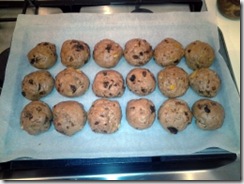 Arrange rounds on a baking tray/sheet, either lightly greased or (preferably) on a sheet of baking paper. Then cover loosely with plastic/cling wrap, and place in a warm location to rise for about 20-30 minutes, or longer if desired. The distance between rounds should be 1-2 cm, depending on the size of the buns – they should roughly double in size, and just come into contact with each other at closest points, which allows crosses to be applied as a ‘grid’ without spillage!